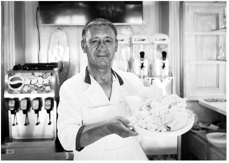 喀赞其街头有一家“玛尔格兰冰淇淋店”,这里出售冰淇淋已有84 年历史了。店主是67 岁的乌孜别克族老人买买提玉素甫·斯迪克,他从父亲手中继承了这处300 多平方米的院落,并在2016 年改建成以销售手工冰淇淋为主的快餐店。