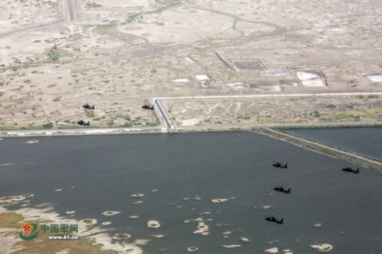 混编直升机群飞越湖泊。吴世科 摄