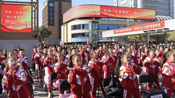 此次落成仪式以“弘扬‘哈密精神’、同心逐梦未来”为主题,1987年“哈密精神”亲历者代表、2024年“哈密精神”传承者代表、老干部代表、援疆干部代表、党代表、人大代表、政协委员、各类先进典型代表、社会各界代表等齐聚哈密火车站站前广场,共同见证这一承载“团结协作、无私奉献”精神的文化地标诞生。
