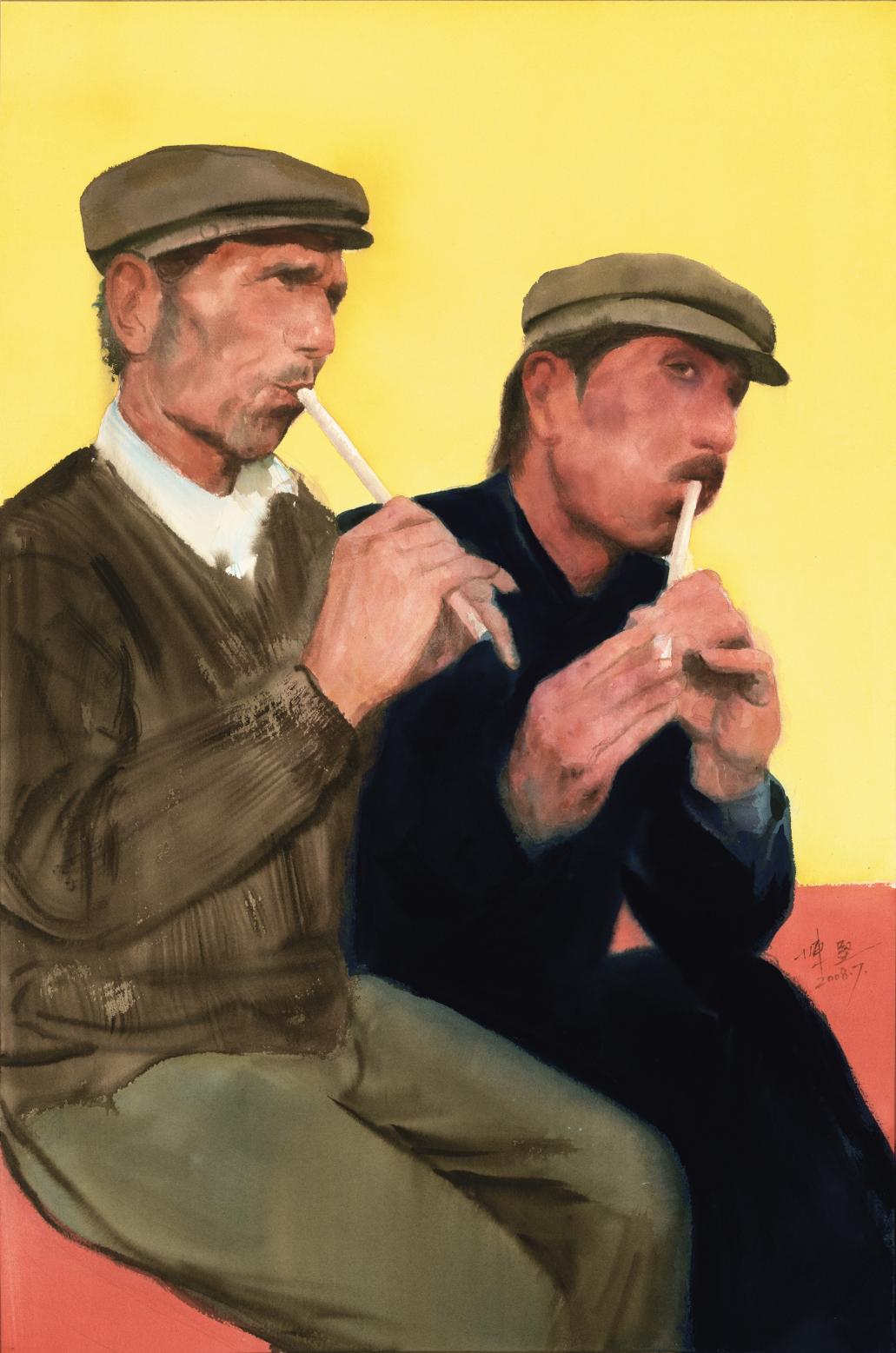 1998年,水彩画家陈坚首次踏上帕米尔高原,当他捧起从当地塔吉克人递过来的热腾腾的奶茶,所感受到的异乡温暖,再到此后的每年,都要来此进行一到两个月的长期驻留,促使其完成了从“他者”到“归人”的身份转换。正如陈坚所说:“他们的日常,也是我的日常。”也正是有了这种深度的共处,才使他的作品超越了一般民族题材的表层叙事,而达到直抵人性的共通之处。