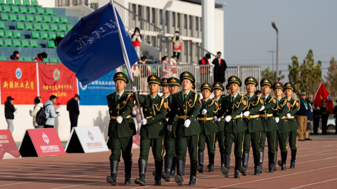 擎旗奋进担使命,青春筑梦向朝阳。10月31日,2025年中国大学生国旗护卫队展示赛(西部赛区)在新疆工业学院启幕。来自西部赛区新疆、内蒙古、陕西、甘肃等省区,以及非西部赛区上海、重庆、广东等省市的31支高校国旗护卫队、700余名队员齐聚昆仑山下的和田新城,以挺拔身姿、铿锵步履展现当代大学生护旗卫士的热血风采,传递爱国强军的青春信仰。