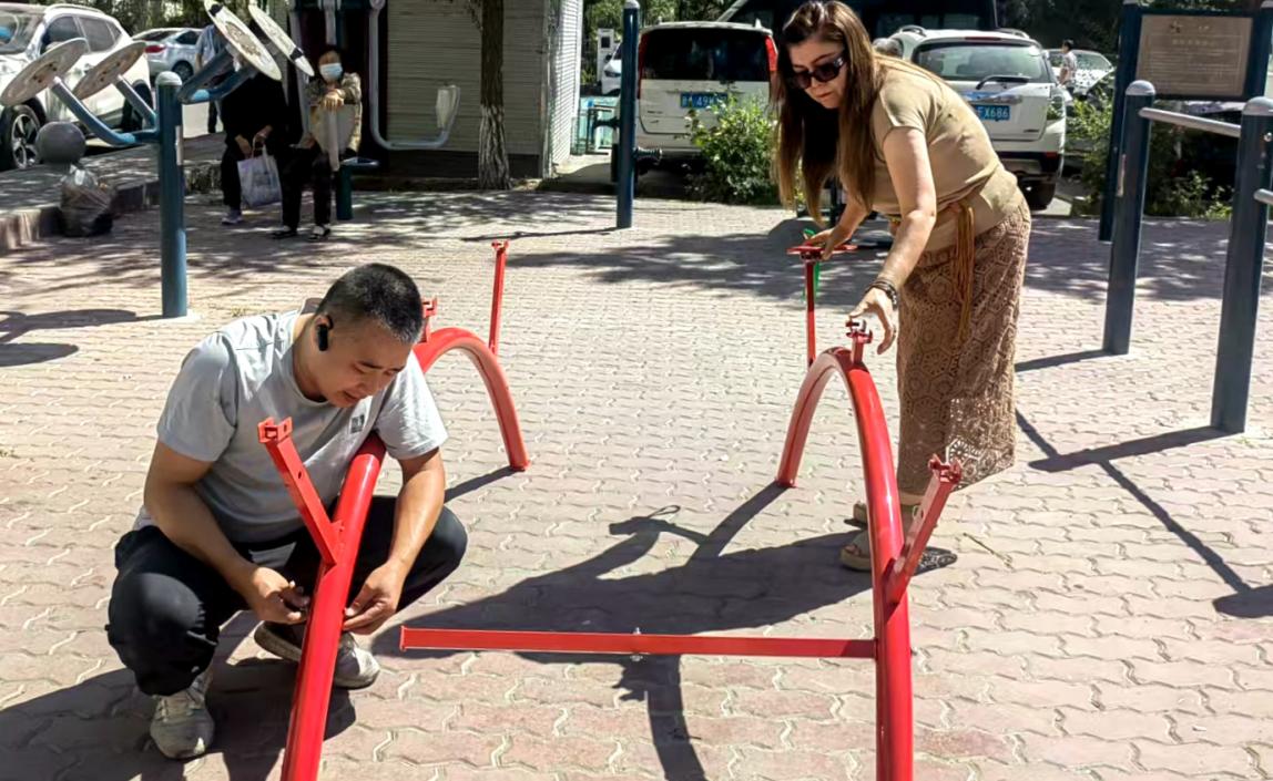 在日常与居民的交流中,新雅社区和沙依巴克区园林管理局的工作人员多次听到这样的声音:“咱们小区那几张乒乓球桌太旧了,台面都磨损了,打起来不得劲。”“想锻炼一下,但好的公共运动设施太少了。”居民们对运动健身的热切期盼,被社区工作人员一一记在了心里。但新的球桌安在哪里?怎么布局更合理?社区并没有简单地“一换了之”,而是决定将决定权交给居民。“安装新球桌,大家说了算!”社区很快发出邀请,组织了一场关于乒乓球桌选址与布局的居民协商会。会上,热爱运动的居民们畅所欲言,气氛热烈。大家你一言我一语,从光照、空间等多个角度出发,提出了许多宝贵建议。工作人员认真记录。最终,在社区的积极推动和居民的共同期盼下,两台崭新的乒乓球桌很快运送至小区,在选定的地方稳稳安装起来。湛蓝色的台面在阳光下熠熠生辉,坚固的球网迎风挺立,立刻吸引了居民的目光。