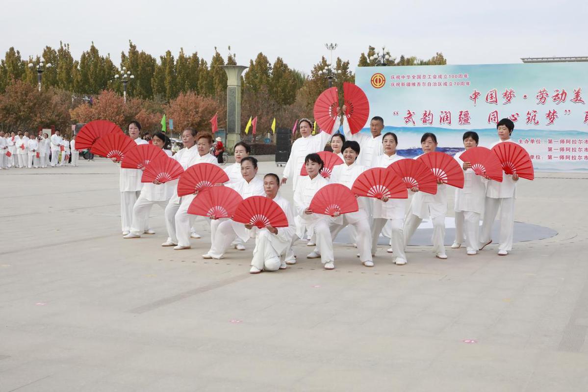 近日,在新疆阿拉尔市三五九旅屯垦戍边纪念碑前的广场上,“中国梦・劳动美・阿拉尔好—武韵润疆 同心筑梦”职工千人太极拳展演盛大举行。此次活动由新疆兵团第一师阿拉尔市党委宣传部、第一师阿拉尔市总工会联合主办,第一师阿拉尔市志愿者协会承办,以中华优秀传统文化为纽带,为各族群众献上兼具文化底蕴与时代气息的视听盛宴。