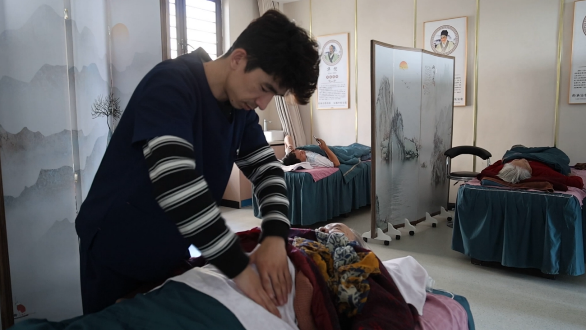 图为老人们在理疗 (布阿洁热姆·玉山 摄)