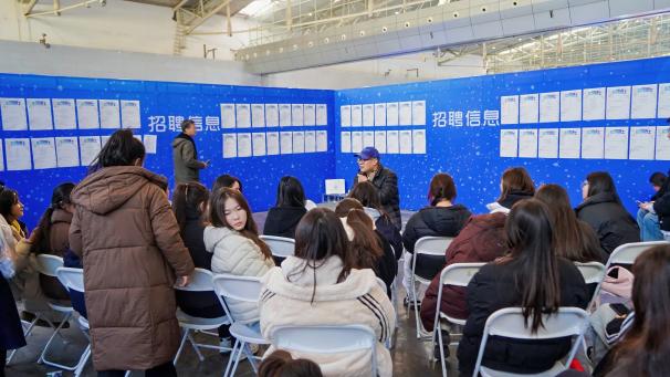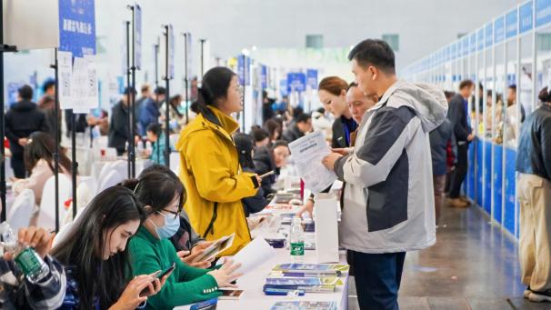 第十九届新疆冬季旅游产业交易博览会“人才直通车—文旅专场招聘”专区现场,求职者聚焦岗位信息,积极咨询交流求职相关事宜。新疆维吾尔自治区旅游协会供图