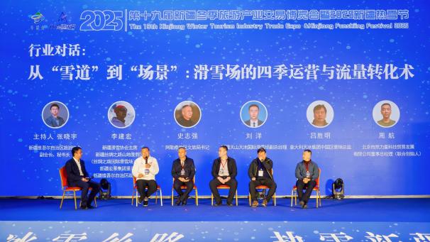 第十九届新疆冬季旅游产业交易博览会行业对话活动,围绕“从‘雪道’到‘场景’:滑雪场的运营与流量技术转化”主题,嘉宾们现场分享经验、深入交流探讨。新疆维吾尔自治区旅游协会供图
