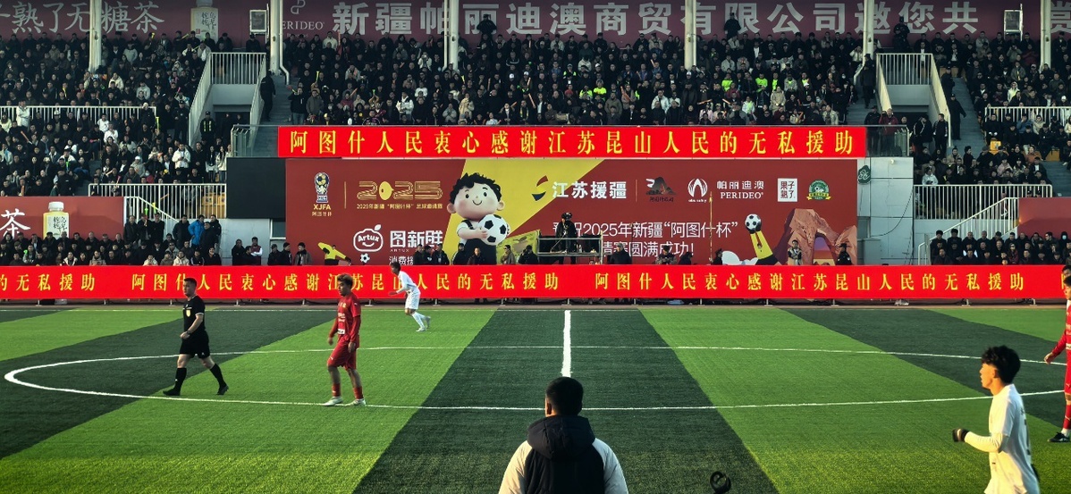 我们深知,一场赛事的高规格,始于历史底蕴的厚积薄发,成于党群协同联动的精耕细作。阿图什的足球基因,早已深植于1885年依克萨克村足球场的寸土之间,铭记于1927年村民骑毛驴、赤足迎战并击败英国、瑞典领事馆球队的传奇之中。如今的“阿图什杯”,正是这份“开放包容、团结协作、顽强拼搏、勇争一流”足球精神的当代延续与升华。从自治区体育局的悉心指导、自治区足球协会的专业统筹、各级党委政府的鼎力支持,到阿图什市各单位各部门的通力协作、30万阿图什党群、干群的同心聚力,再到江苏省援疆指挥部、江苏昆山援疆工作组的倾情助力,以及“果子熟了”、阿布萨黑、帕丽迪澳、千佛洞电视技术、国译农业、中国移动、中国电信、中国联通等企业与克州农商银行、中国银行、中国农业银行等金融机构的跨界赋能,以及全体阿图什市文体旅小伙伴的无条件贯彻执行,多级联动让“政府引领+市场运作+社会参与”的模式落地开花,更奏响了东西协作、共促发展的时代强音。赛前,全市多部门组建专项工作组与赛事组委会,8大类32项实施方案细化到每一个流程、每一个节点;赛中,1500余名工作人员、22名专业裁判各司其职、精益求精,100辆“微光暖行志愿服务队”网约车累计服务5万余人次,4个医疗服务点、6辆救护车、28名医护人员与消防、应急、住建等部门协同发力,构筑起全方位、无死角的安全防线,让赛事实现全程零事故、零差错。那些凌晨星夜中布置场地的身影、寒风凛冽里递出的暖心姜汤、高效精准的失物招领服务、免费为外地球迷提供矿泉水、馕、拉面的暖心商家,无不彰显着暖城阿图什的细致与温情。而在江苏昆山援疆工作组的倾力支持下,足球公园升级后可容纳8000人的看台座无虚席,日均近万人的观赛热潮、单日8000张的售票纪录,加之210万元的赛事总奖金,正是对这份周全保障与专业质感的最佳回馈。