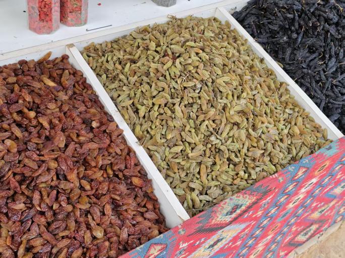 吐峪沟村民沿街售卖特色果干。魏垚竹摄