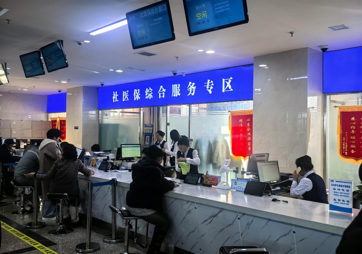 吉木萨尔县政务服务中心,工作人员正给前前来办理社保的群众办理业务,摄影毛卫华