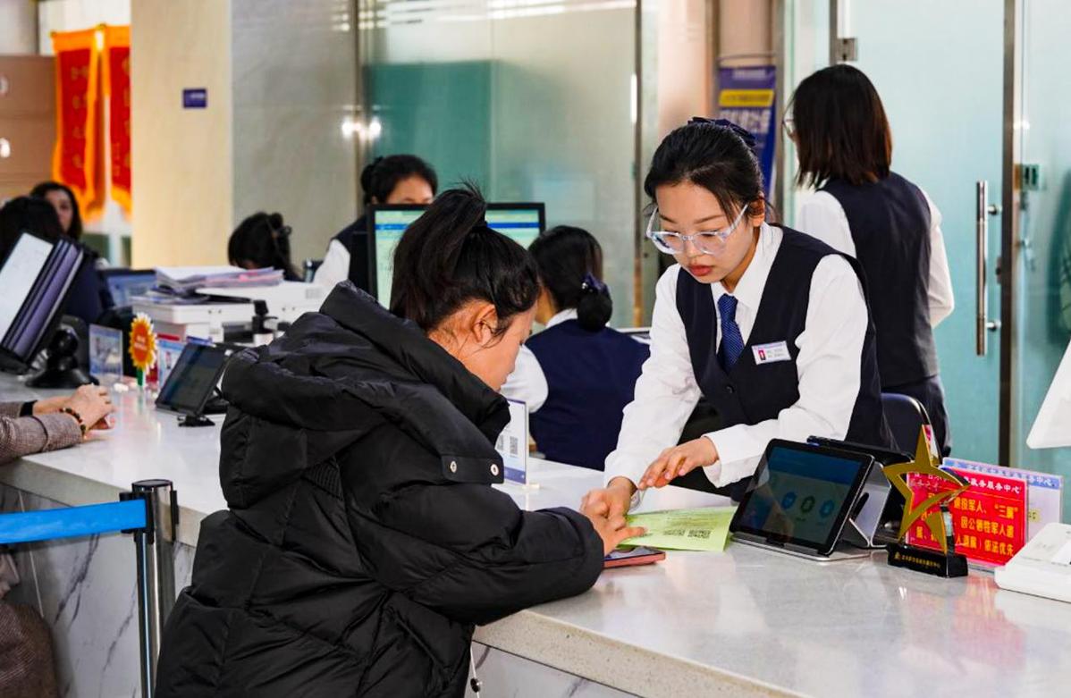 11月26日,吉木萨尔县政务服务中心,工作人员正给前来办事群众处理业务。 常谊谊 摄