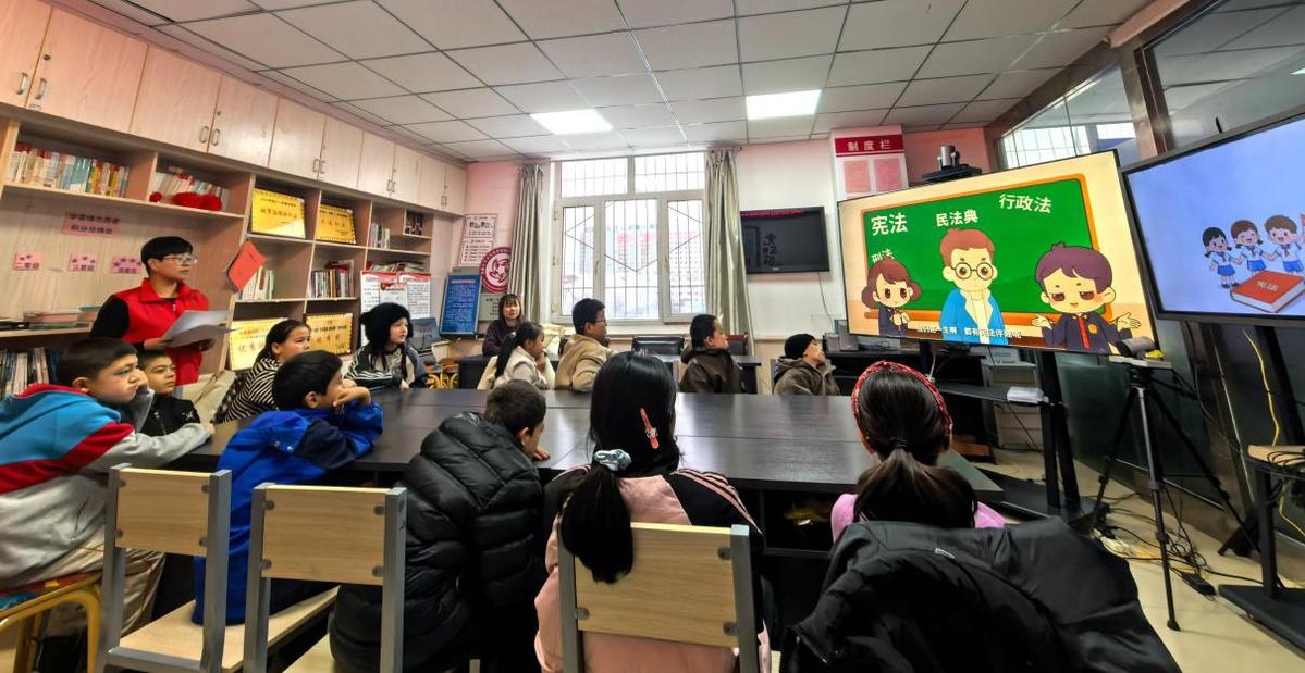 活动现场,气氛热烈,欢声笑语不断。一部精心挑选的宪法主题动画视频吸引了孩子们的目光。视频将严谨的法律条文,巧妙地转化为“受教育权”“环境保护”等一个个贴近生活的生动场景,让孩子们初步理解了宪法的相关知识。社区志愿者崔素莘用通俗易懂的语言,耐心地为孩子们答疑解惑,引导他们深入思考。大家听得津津有味,频频点头。紧随其后的“宪法知识快问快答”环节将活动气氛推向高潮。“我们为什么要遵守公共秩序?”……主持人话音刚落,孩子们便争先恐后、踊跃抢答。在寓教于乐的竞技中,宪法知识不再是书本上的文字,而是成为孩子们的“智慧宝藏”。一位陪同参与的家长王女士感慨道:“孩子兴奋地和我讨论宪法知识,这种趣味互动的方式普法,效果真的好太多了,真正做到了入脑入心。”