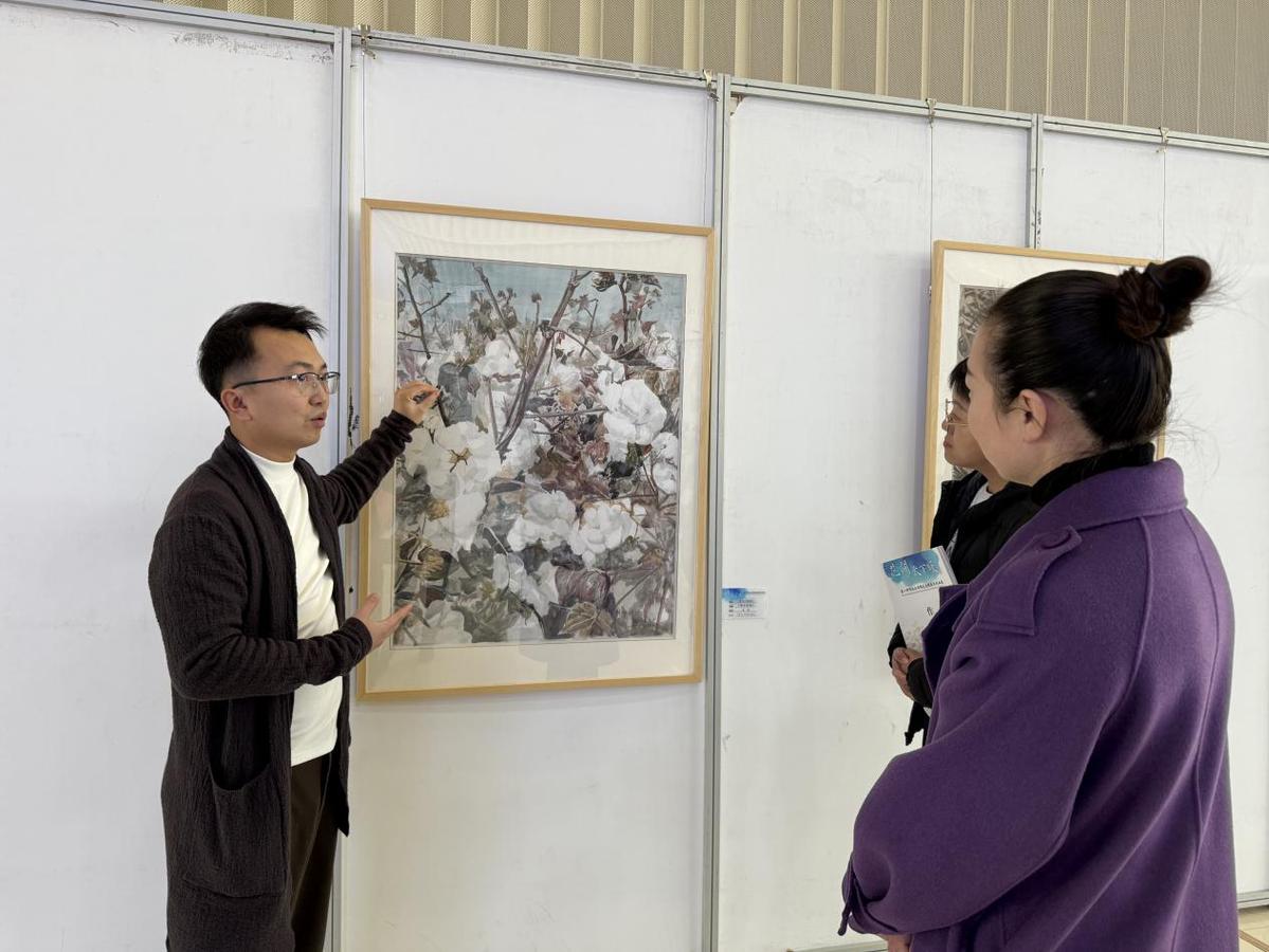第一师阿拉尔市美术家协会副秘书长范杰有3幅作品入选,其中《棉田轻语》获优秀奖。他表示,多门类作品拓宽了创作视野,阿拉尔棉花吐絮盛景令人震撼,今后将深耕绘画创作,展现阿拉尔风采。