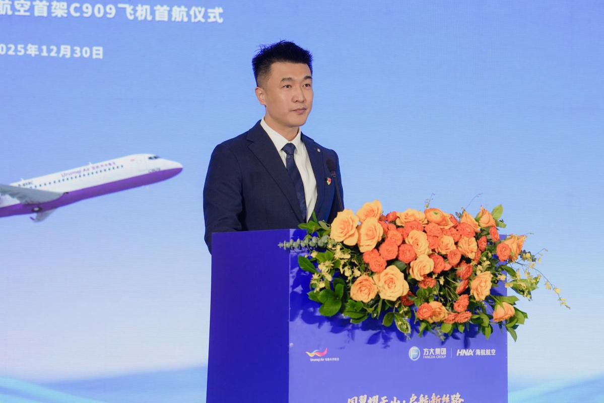 2025年12月30日上午10时,新海航航空集团旗下乌鲁木齐航空在乌鲁木齐天山国际机场隆重举行仪式,庆祝其首架国产C909飞机正式投入商业运营。随着本次主题为“国翼耀天山·启航新丝路”的首航仪式顺利完成,标志着乌鲁木齐航空首架C909飞机在丝绸之路经济带核心区的常态化运营拉开序幕,开启服务新疆、辐射丝路的全新航程。