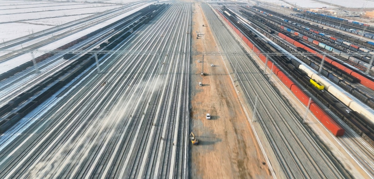 图为:哈密东站扩能改造主体工程建成投用后,共有94条股道同时保障货物列车作业,成为新疆规模最大、智能化程度最高的路网性编组站。
