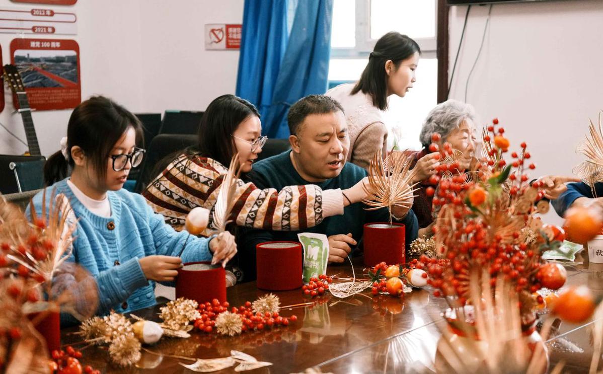 “您看,这支银柳这样固定,寓意着‘银留’富贵。”专业老师话音未落,几位头发花白的“老学生”已戴起老花镜,神情专注地开始创作。修剪枝丫,插入福桶,系上贺卡……步骤一丝不苟。七十三岁的退休工程师李伯伯,小心翼翼地将最后一个小灯笼挂上枝头,完成后,他像欣赏艺术品般将福桶缓缓转动,眼角漾开笑意:“感觉自己还是个‘能工巧匠’,这比买来的任何装饰都有意义。”