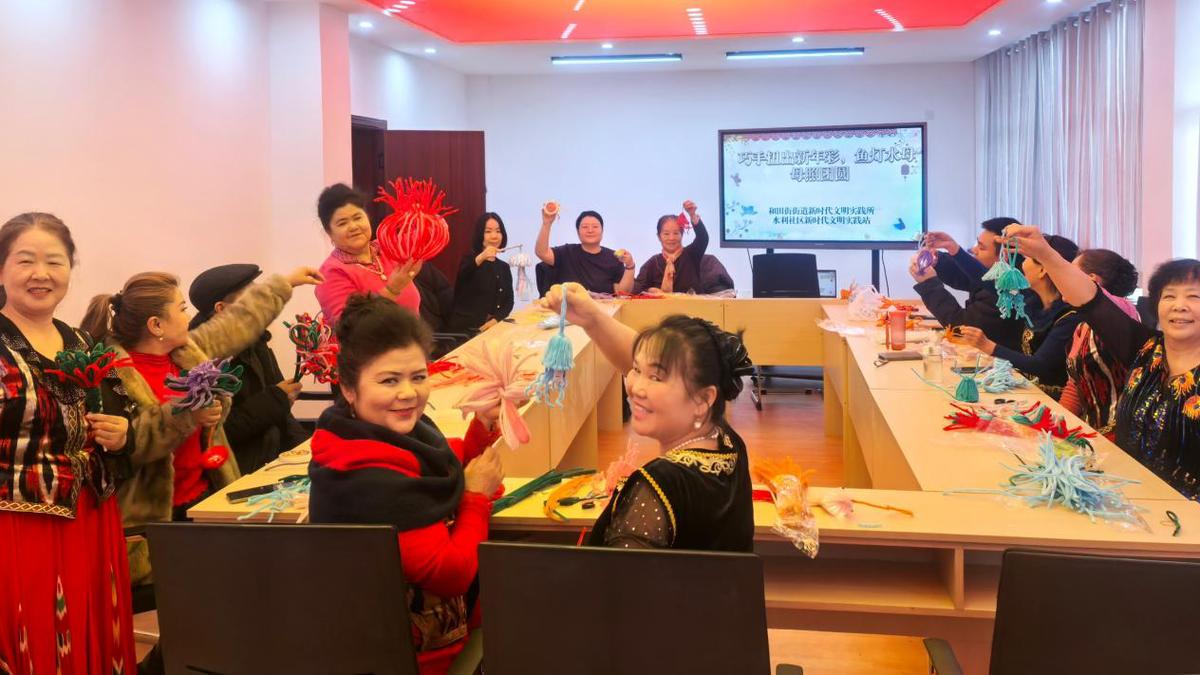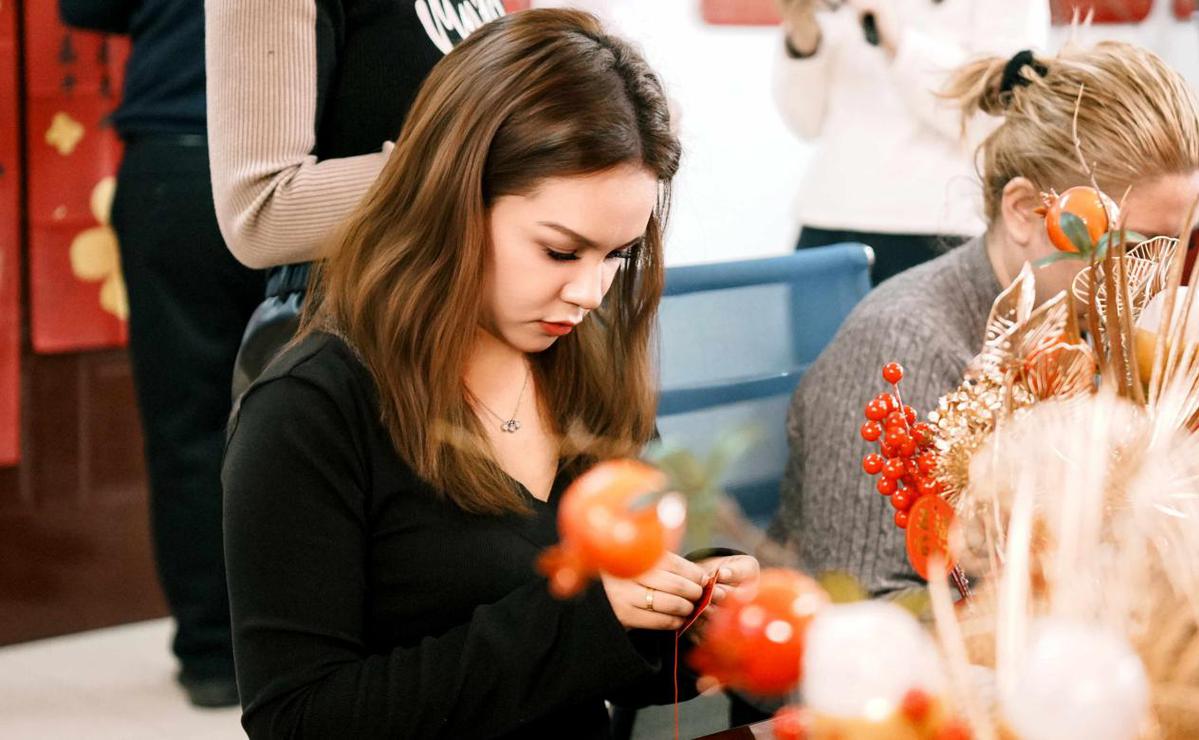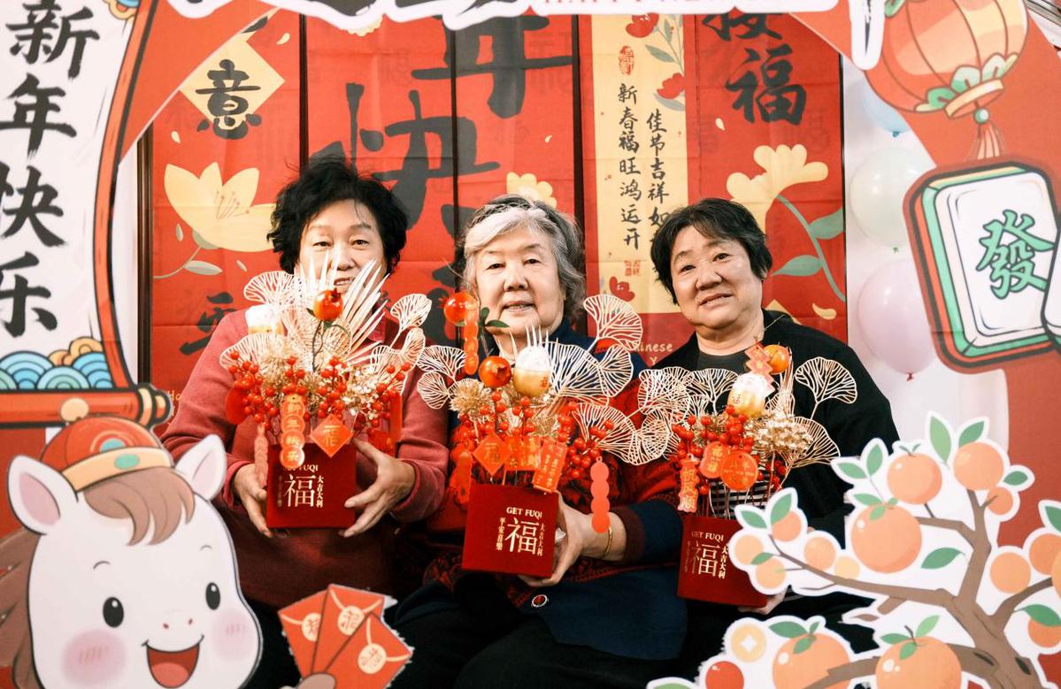 在扬子江路街道十月社区的活动室,空气里弥漫着冬青和银柳的植物清香。红色、金色的福字与小灯笼散落桌面,仿佛跳动的节日音符。一场名为“把福抱回家”的手作活动正浸润在传统文化氛围中。