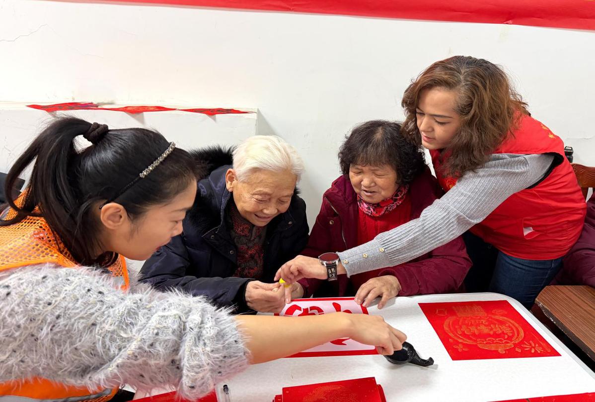 活动现场,居民们齐聚一堂,挥毫泼墨、以笔传情。无论是笔法娴熟的书法爱好者,还是初次执笔的体验者,都专注地在红纸上写下一个个“福”字。一撇一捺间,承载着大家对新春的美好期盼,增添了喜庆氛围。