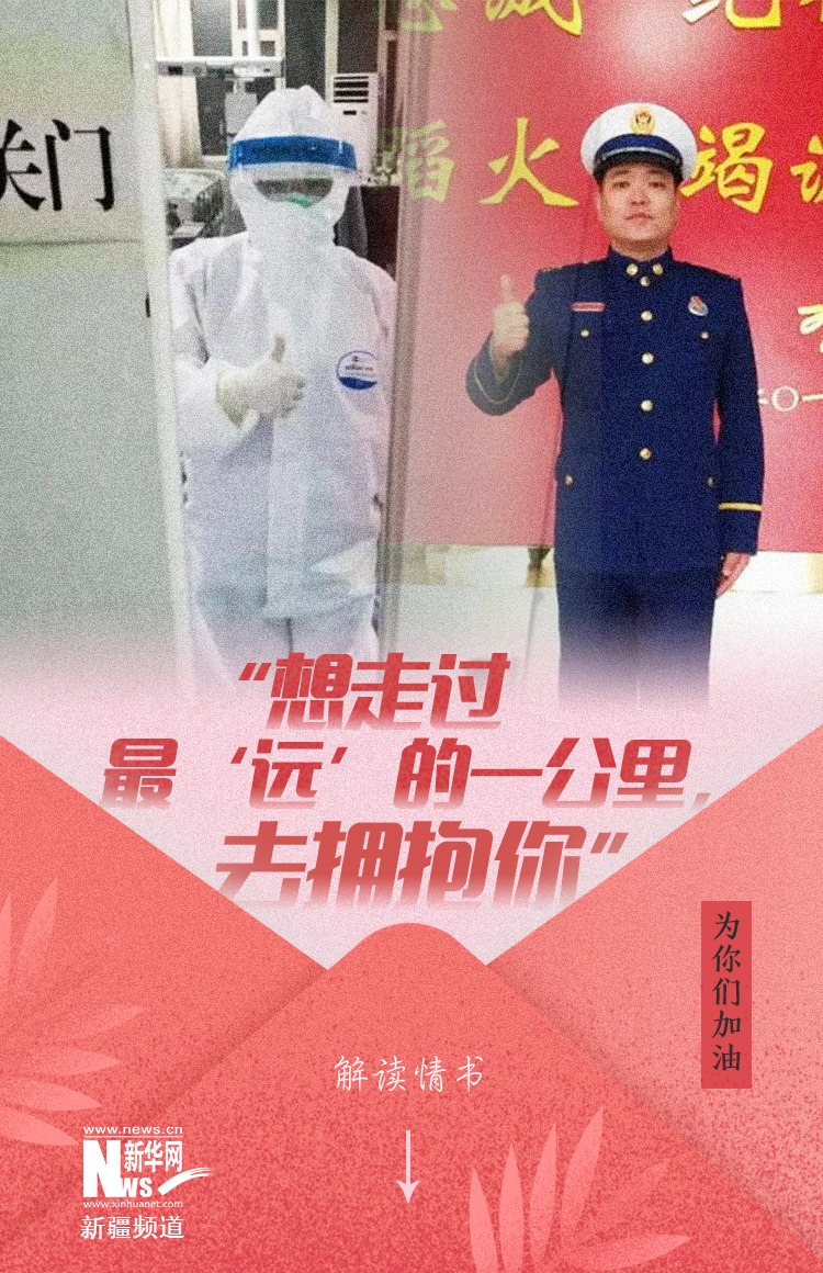 “孩子已经送到父母家去了,都安顿好了,你别操心。我想着,跟你离得近一点儿,咱俩时不时能看见对方,多少踏实些,也是个安慰。”奥鲁木言语中透着些许依恋和心疼,“你知道不,有一种浪漫叫做’与你并肩作战’。我们一定要保护好自己,一起坚守到取得胜利,迎接春暖花开的那一天!”