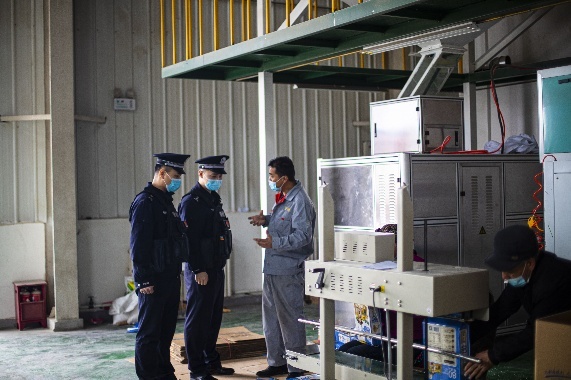 期间,民警着重对生产储存车间、生产设备、安全设施等重点部位开展了全方位安全检查,并详细咨询和查看了各企业的各项应急预案,督促各企业加强自查自纠,及时排除安全隐患问题,做到不留死角。民警仔细询问相关负责人关于安全保卫方面所做的工作,并认真听取了相关责任人在治安保卫方面的建议和意见。同时,民警对企业负责人进行安全防范宣传教育,要求各企业负责人加强安全意识,严格落实安全监管制度,避免发生安全责任事故造成人员伤亡及财产损失。