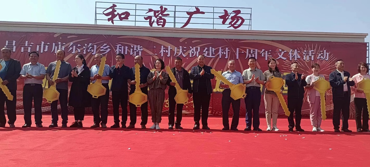 这天,庙尔沟乡和邻近乡镇的各族群众相聚在和谐二村和谐广场,牧民胡安献上一首自编自唱的《美丽怡人的庙尔沟》,加尔肯别克带领阿肯三人组合用闽南语激情演唱《爱拼才会赢》,80岁的老党员托列吾汗献上自己最真诚的祝福辞。大家唱起《红旗飘扬》《故乡流淌》等歌曲,跳起《美丽克孜》《幸福奏鸣曲》等舞蹈,5对哈萨克族民间歌手进行阿肯弹唱比赛,举办了腕力、摔跤、拔河、叼羊、赛马比赛,尽情抒发喜悦之情,感恩之情,表达“和谐和美、奋进奋起”的建村十年主旋律。