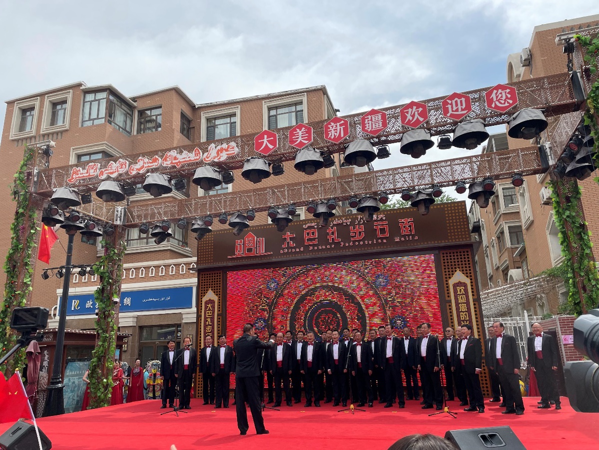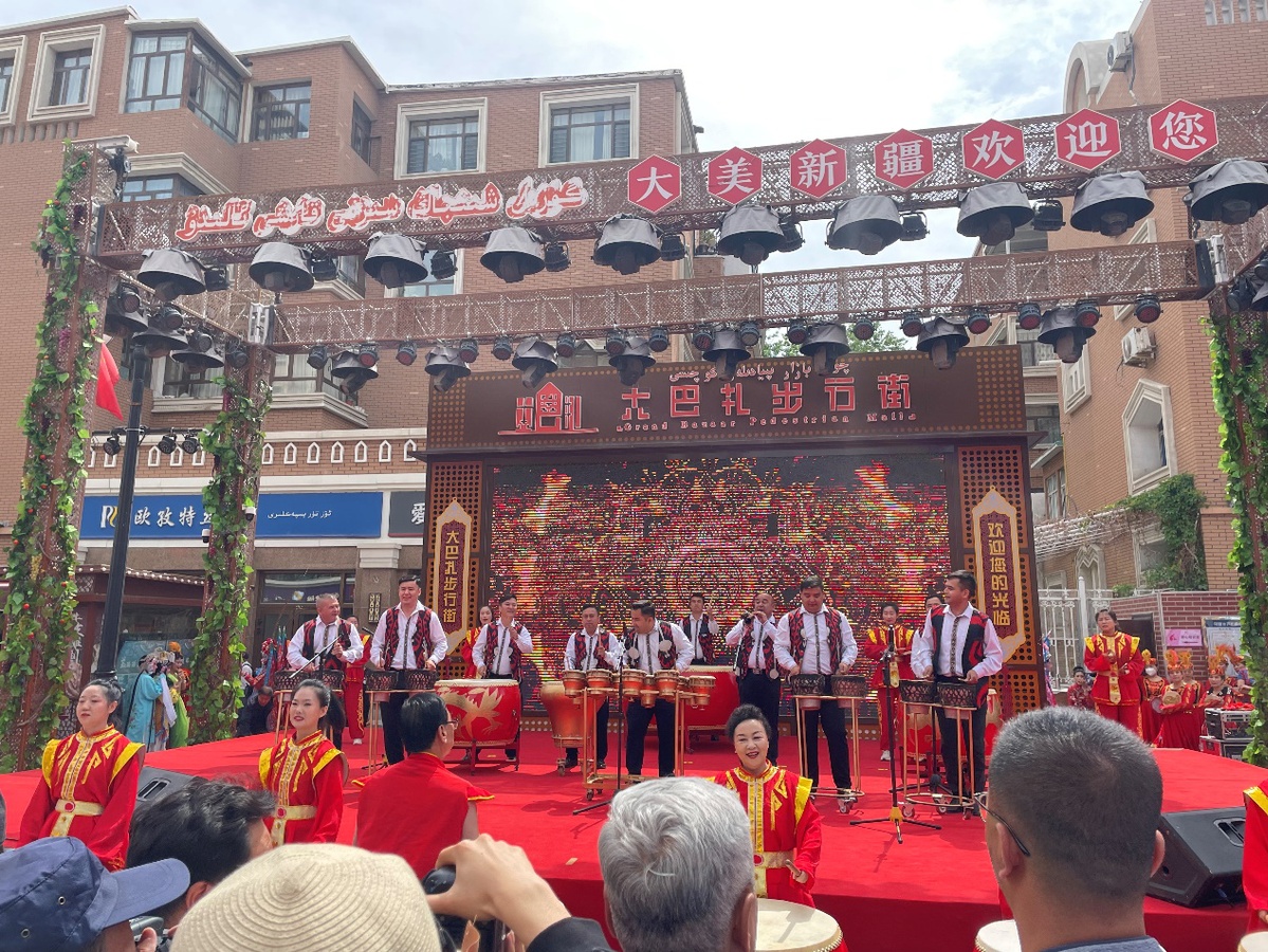 启动仪式现场,集体舞、京歌、乐器独奏、独唱等多种形式的文艺表演吸引了在大巴扎步行街游玩的众多游客,观众们纷纷鼓掌喝彩,现场气氛活跃热烈。