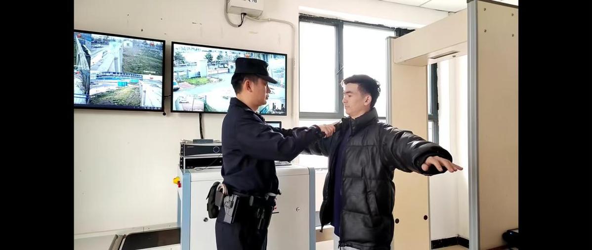(司法警察在值班室进行安检)