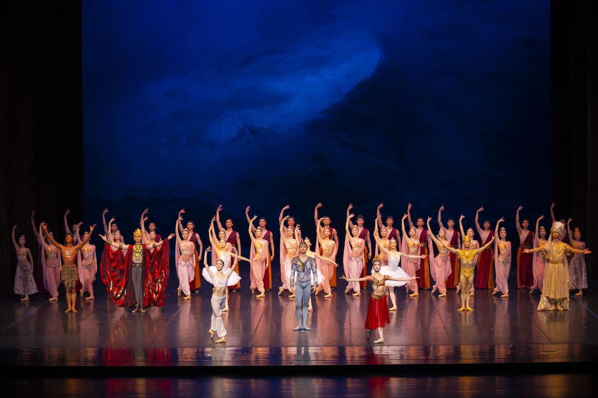 1877年马里乌斯·彼季帕创作这部作品时,取法印度史诗《沙恭达罗》,首次突破地域叙事边界,将东方风情与芭蕾程式化语言深度融合,借妮基娅与索罗尔的爱情悲剧,把忠贞、背叛、牺牲等人类共通情感,化作足尖可诉的身体语言。其历史价值,不仅在于奠定古典芭蕾技术标准,更在于构建起了一套跨文化身体叙事语法,让传说里的忠贞与牺牲主题,有了普世性的情感载体。