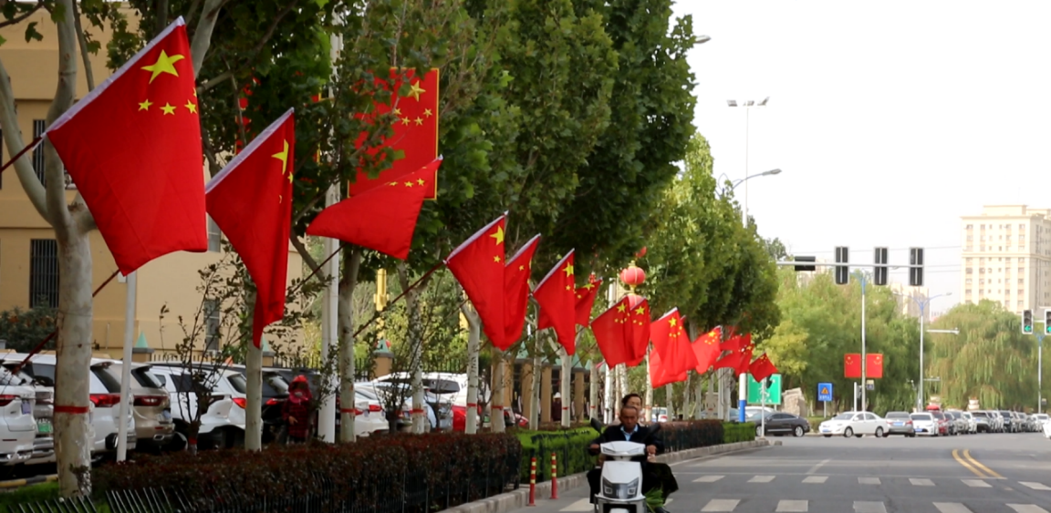 在中华人民共和国成立76周年、新疆维吾尔自治区成立70周年之际,新疆库车市大街小巷处处洋溢着节日的喜庆氛围,一面面鲜艳的五星红旗在街头迎风飘扬,耀眼的“中国红”为城市注入了勃勃生机。