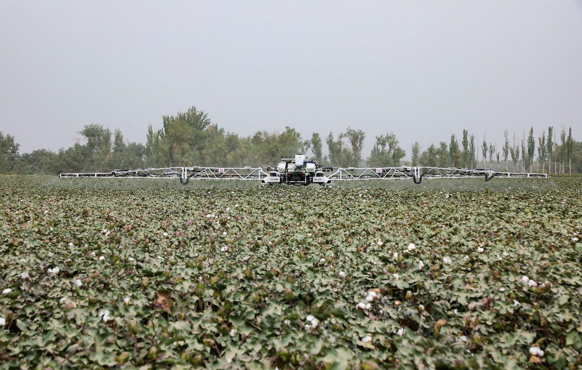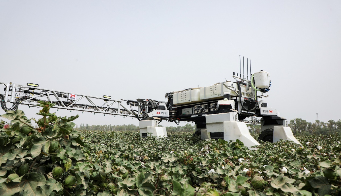 智能机器人在十二团塔南镇棉田作业。阿迪力·艾尼 摄