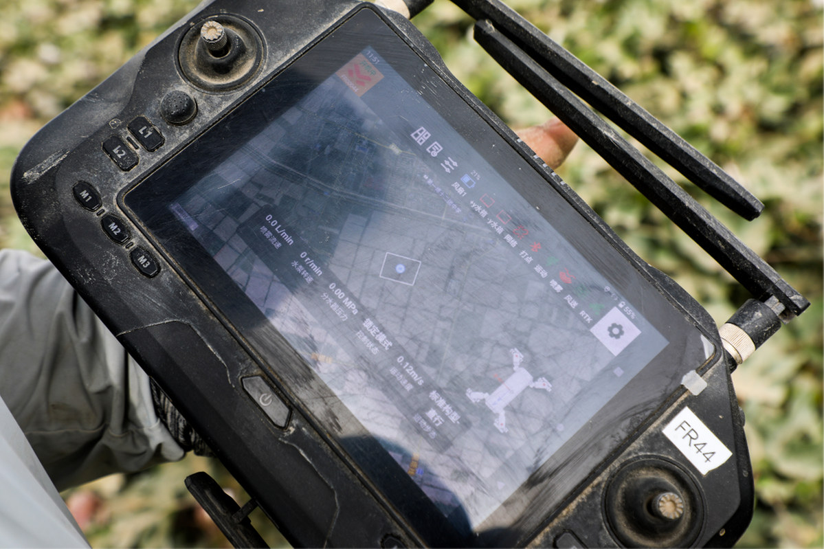 “这款是第五代模块化变形机器人,目前已在南疆投放8台,明年将大量应用。设备搭载12级中心风力的涵道式风扇,通过风压与回旋涡流实现作物叶片正反面均匀施药。除了脱叶,防治红蜘蛛、蚜虫的效果也很好。”觉物科技(深圳)有限公司运营经理赵嘉丽说。