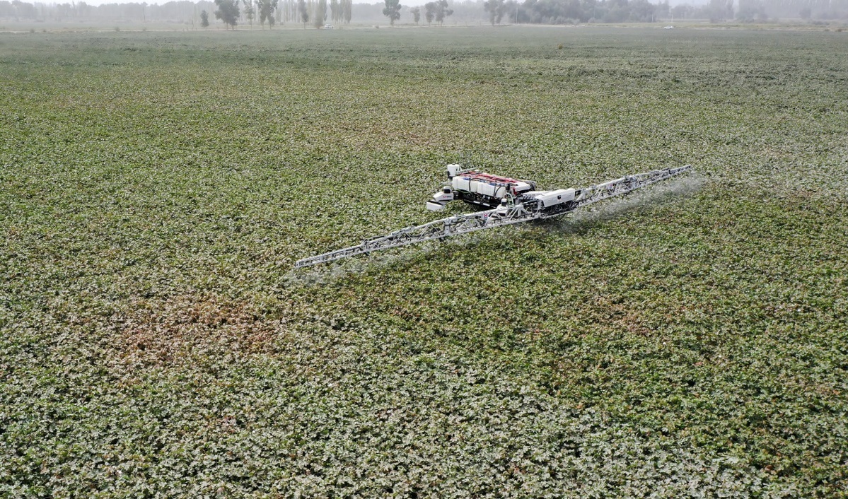 眼下,新疆兵团第一师阿拉尔市200万亩棉花陆续进入吐絮期,职工群众正抢抓农时,全面开展脱叶剂喷施工作,为棉花丰产丰收筑牢基础。