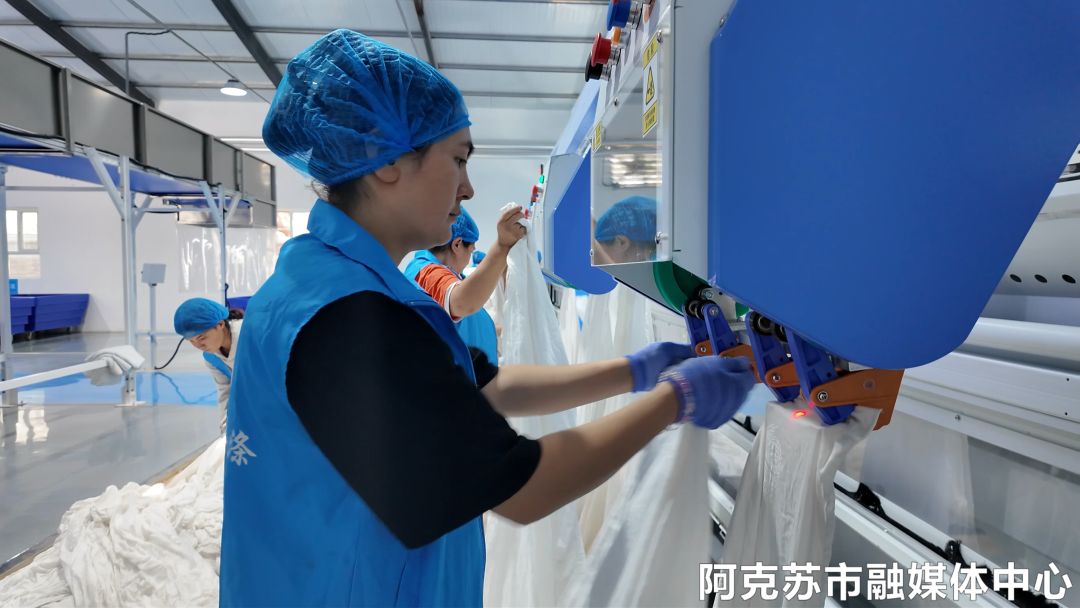 阿克苏弘康棉业有限公司人事助理阿迪力·吐尔逊说:“截至8月份,我们已经完成了3120吨的产量,今年总目标是4680吨,我们的产品主要销往全国各地。接下来,我们将全力以赴完成下今年的目标产值,为阿克苏经济高质量发展贡献一份力量。”