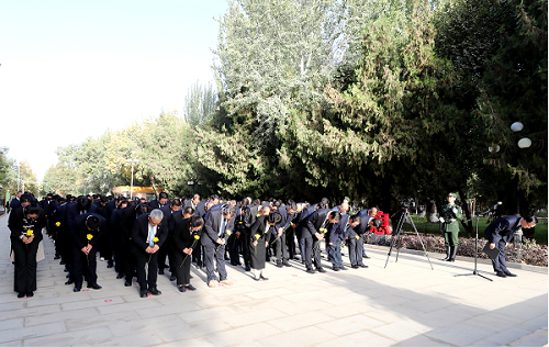 9月30日上午,塔里木大学举行向王震将军铜像敬献花篮仪式。