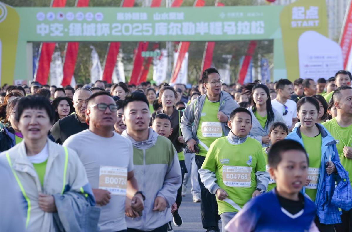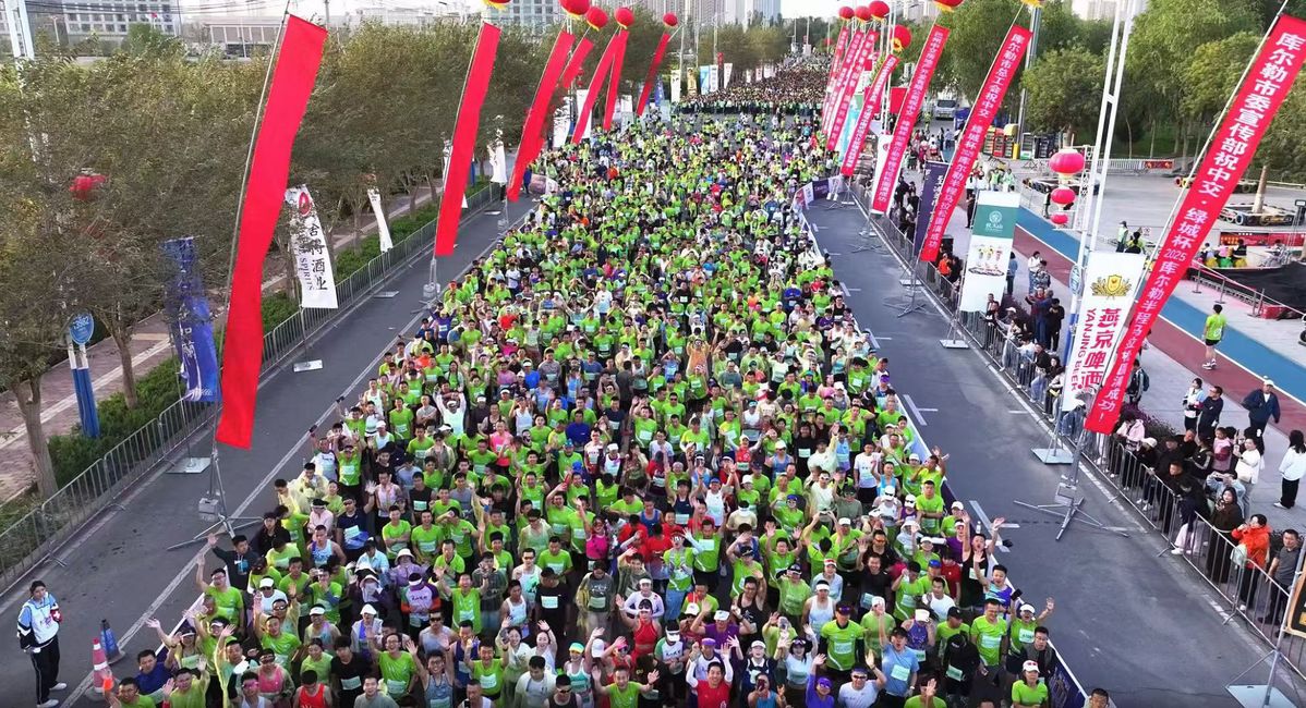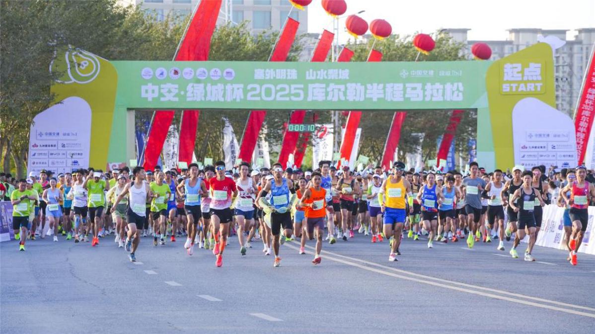 10月2日,中交·绿城杯2025库尔勒半程马拉松鸣枪开跑。李兵摄