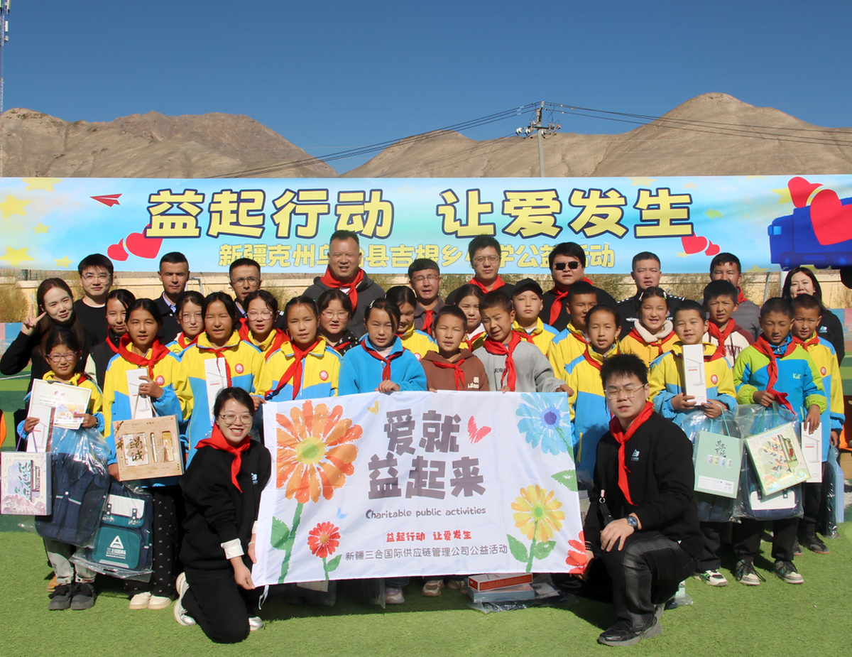 在祖国版图最西端的帕米尔高原东麓,克孜勒苏河静静流淌,河畔的“西陲第一校”新疆克州乌恰县吉根乡小学坐落于此,这所紧依边境线的校园,不仅是守护希望的教育阵地,更是边疆孩子追逐梦想的摇篮。10月11日,新疆三合国际供应链管理有限公司志愿者怀揣深厚情谊走进这里,以一场 “益起行动,让爱发生” 的爱心慰问活动,为这片边陲土地的教育事业注入温暖力量。