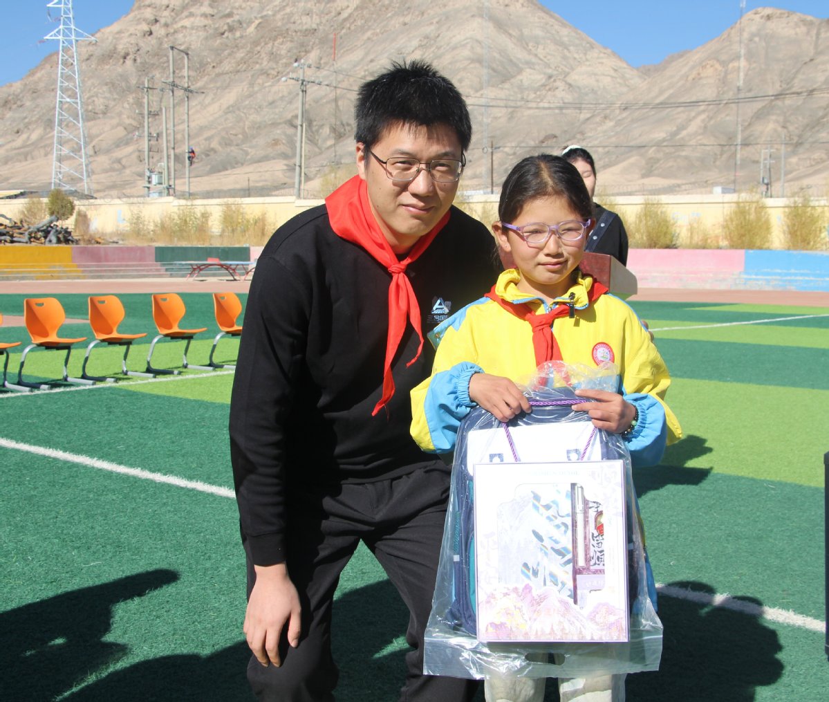 老师们将物资分发给每个孩子:女孩们害羞地接过书包,男孩子们迫不及待地抱起足球、篮球,七手八脚地拍起来,清脆的笑声伴着秋日的暖阳回荡在校园里。对孩子们而言,这些物资意义非凡。崭新的书包是书本的“小家园”,将陪伴他们走过每一段求学路;饱满的足球、篮球是活力绽放的“小舞台”,将陪伴他们奔跑过每一节体育课;而那一套套彩笔,更是打开美育大门的钥匙,让单调的绘画课堂变得生动有趣。