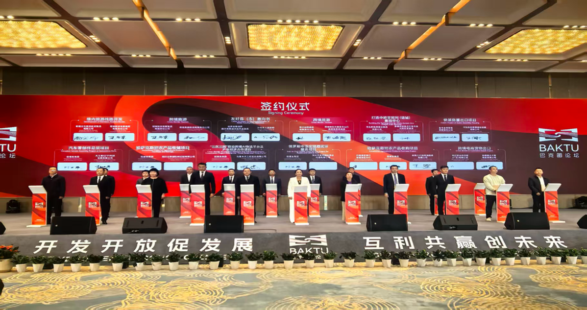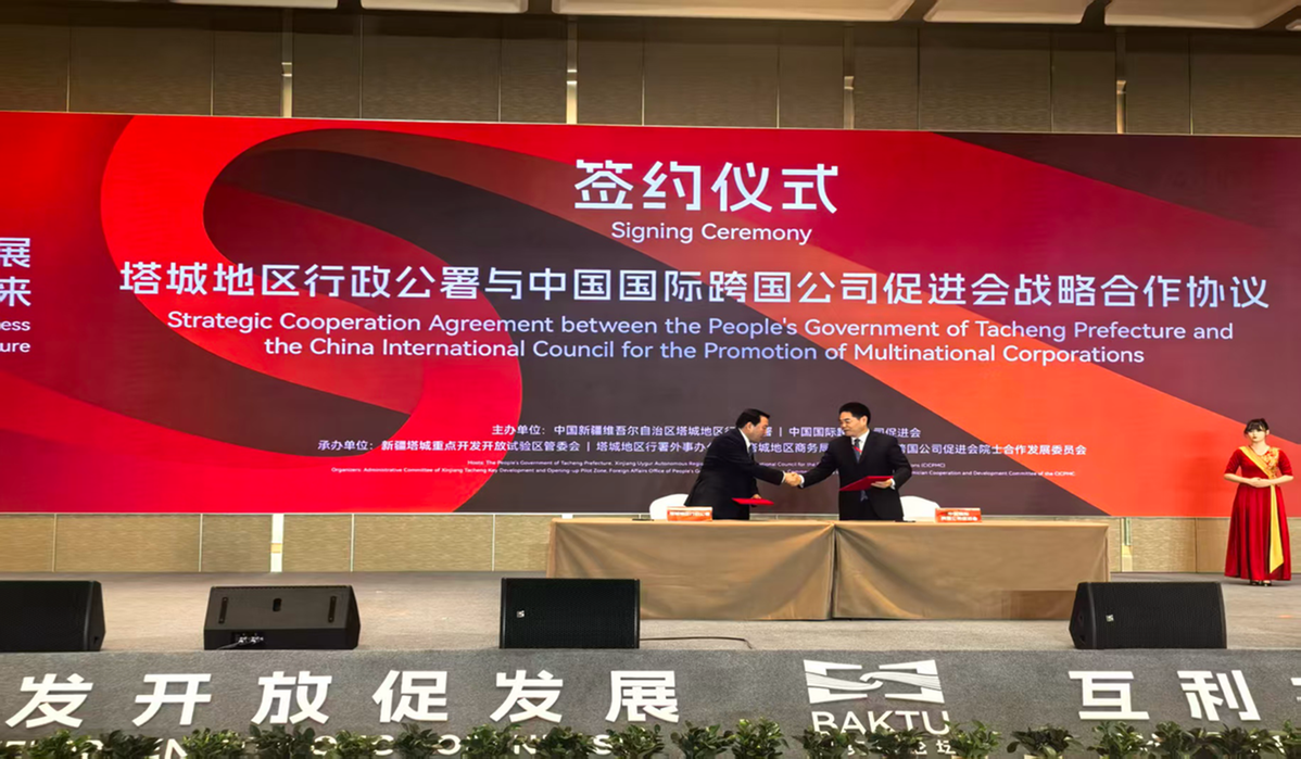 中国将坚定不移通过共建“一带一路”倡议,推进基础设施“硬联通”、规则标准“软联通”以及同共建国家人民“心联通”,与各国携手为构建人类命运共同体注入持久动力,让友谊与合作的种子在欧亚大陆上生根发芽,开花结果。活动现场洋溢着合作的热情与共赢的喜悦,地区行署及各县市、新疆塔城重点开发开放试验区与哈萨克斯坦共和国多个县、市级政府,中国国际跨国公司促进会,清电能源集团有限公司等27家企业、协会,签订涵盖新材料、跨境旅游、汽车零部件总装出口等30个框架协议、对外贸易合作协议、投资合作项目协议,签约金额131.05亿元。哈中贸促会会长哈纳特·拜赛克说:“塔城是故乡,塔城也是丝路北通道关键节点,巴克图口岸是黄金通道,当前阿拜州与塔城在农业、跨境电商等领域民间合作蓬勃发展。协会愿搭建友谊桥梁,提供专家+管家式服务,助力企业合作。”