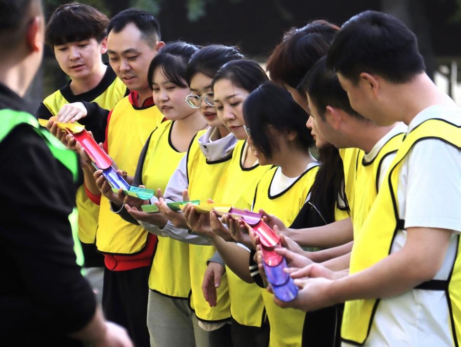 在拓展活动过程中,“鼓动人心”“达芬奇密码”“极速六十秒”“拯救大兵”等一系列具有挑战性与协作性的项目有序开展。在“鼓动人心”项目中,队员拉着绳子,通过同步移动控制鼓面平衡,在松弛有度的节奏中感受“人心齐、泰山移”的协作伟力;“达芬奇密码”项目中,团队充分体现决策和统筹能力,将给予的压力转变为处理突发事件的能力,彰显了团结大力量和勇于突破的奋斗精神;“极速六十秒”“拯救大兵”等项目,大家分工明确、各司其职,在一次次尝试与突破中凝聚信任、攻克难关,现场掌声、欢呼声此起彼伏,将敢于担当、团结奋进的氛围推向高潮。
