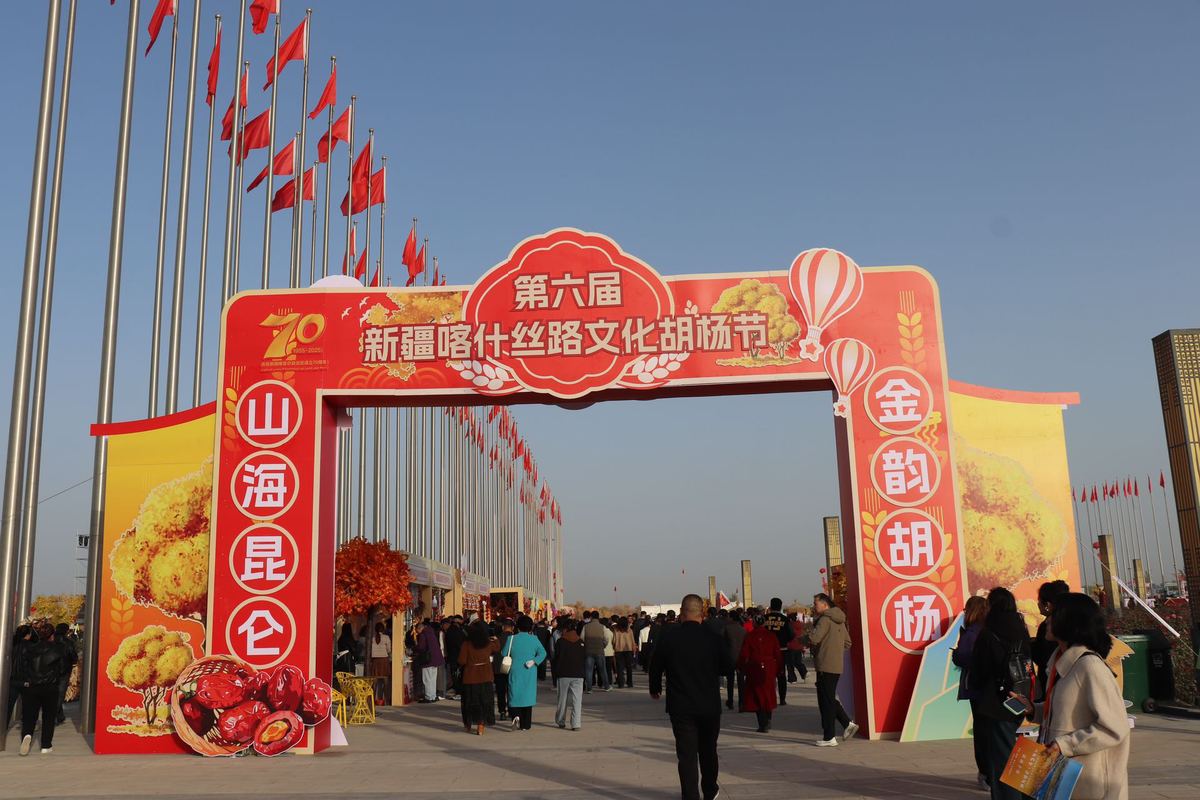 中国日报麦盖提县10月25日电 金秋十月,胡杨鎏金。10月25日上午,以“山海昆仑·金韵胡杨”为主题的第六届新疆喀什丝路文化胡杨节在“刀郎之乡”麦盖提县叶尔羌河生态文化园盛大开幕。本次活动以胡杨为魂、以文化为桥,集中展现喀什生态之美与人文之韵,为推动文旅融合和区域协同发展注入新动力。