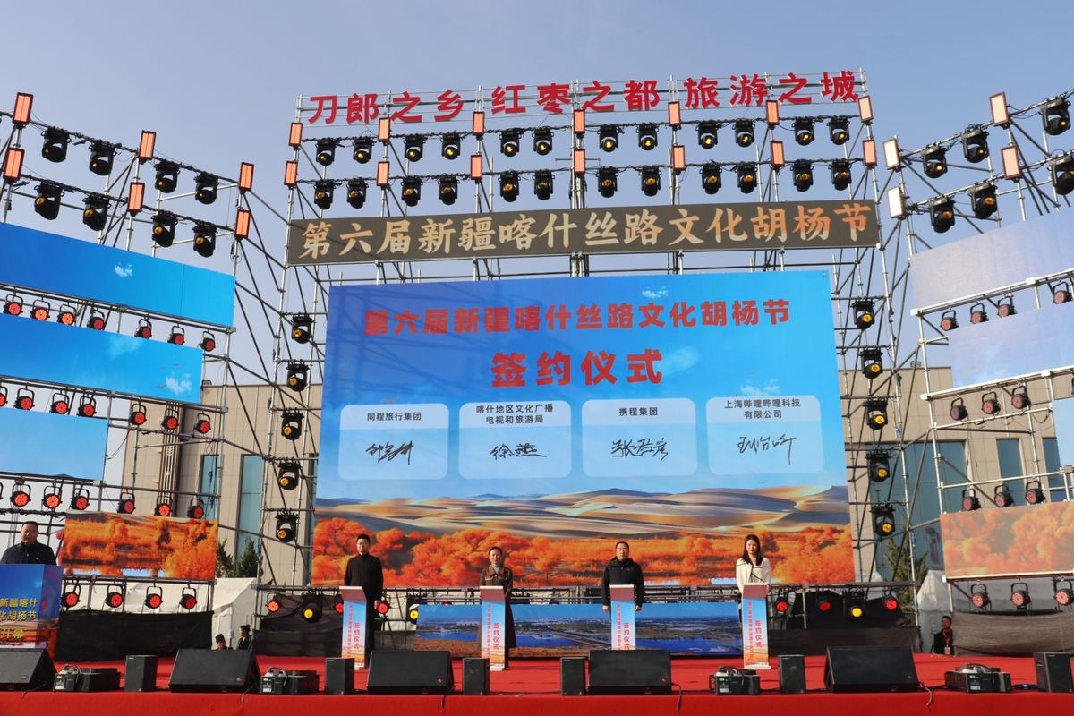 本届胡杨节在推动产业合作上取得丰硕成果。开幕式上完成了多项战略合作签约:喀什地区文化广播电视和旅游局与携程集团、同程旅行集团、哔哩哔哩三家国内头部文旅平台现场达成推广合作;同时,麦盖提县N39°沙漠旅游景区与鄯善库木塔格沙漠风景名胜区、甘肃省敦煌鸣沙山月牙泉景区共同签署协议,宣告“西部沙漠旅游联盟”正式成立,致力于推动跨区域沙漠旅游资源的协同发展。