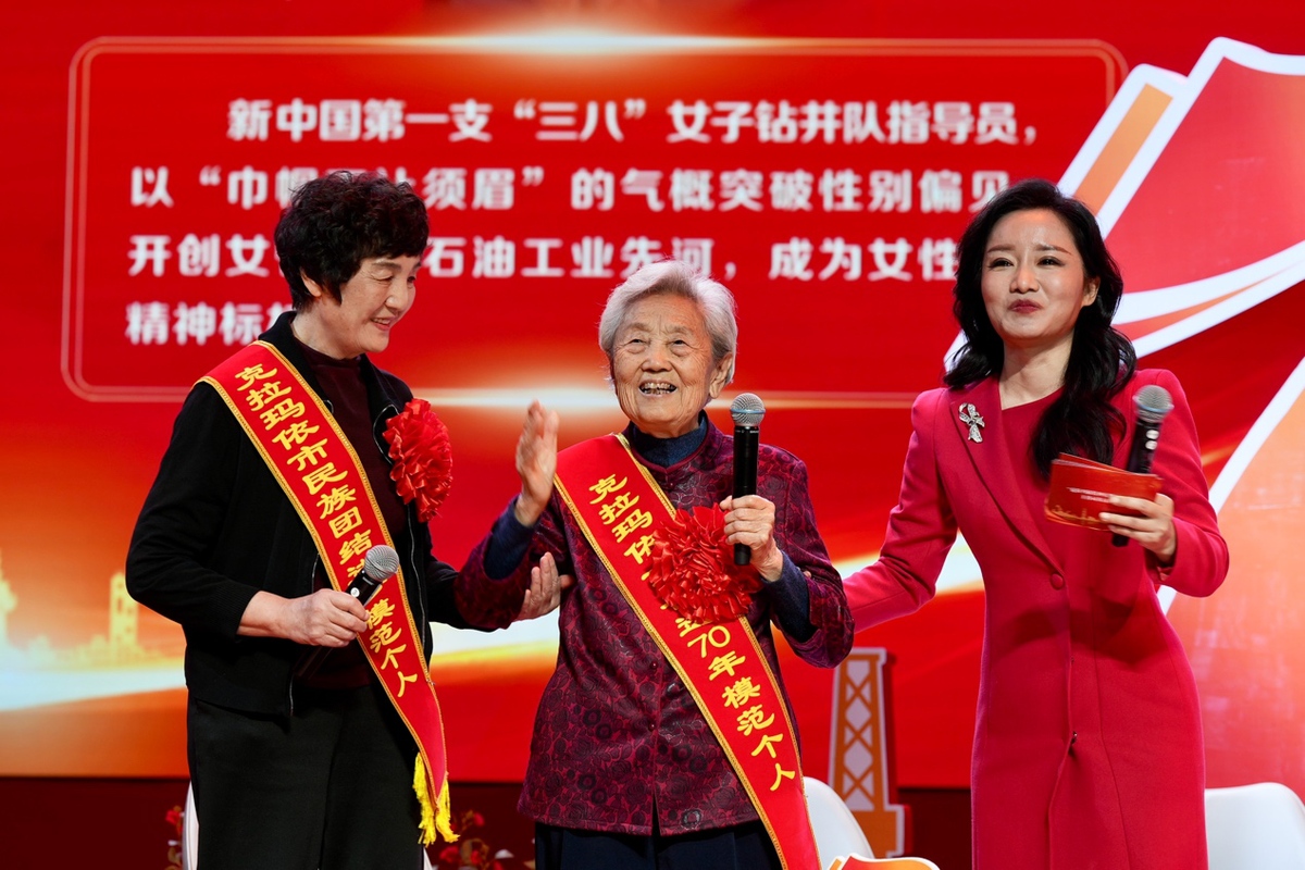 在“克拉玛依精神礼赞”展演环节,克拉玛依三代石油人与城市建设者代表上台交流,深情讲述了克拉玛依从无到有、从戈壁荒滩发展为新型工业城市的巨大变迁,展示了克拉玛依各族群众在“爱国奉献、艰苦创业、民族团结、求真务实、追求卓越”克拉玛依精神感召下迸发出的强大凝聚力,激励新一代城市建设者接续奋斗、踔厉奋发,为建设创新、宜居、美丽、韧性、文明、智慧的现代化人民城市贡献力量。