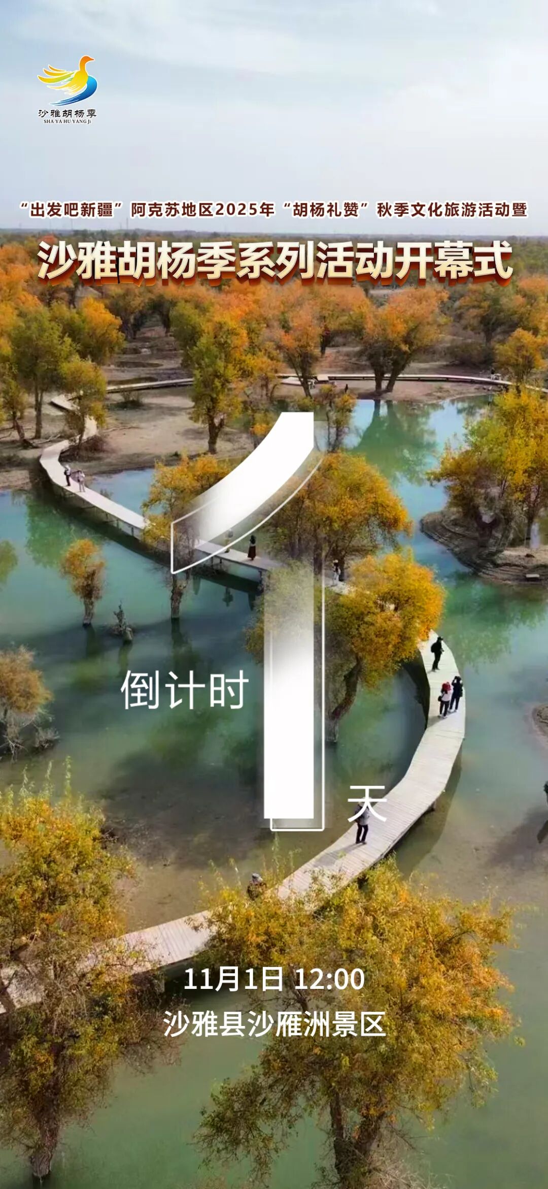 “世界胡杨看沙雅”!470万亩原始胡杨已鎏金,11月1日沙雅胡杨季开幕式将在沙雁洲景区启幕。
