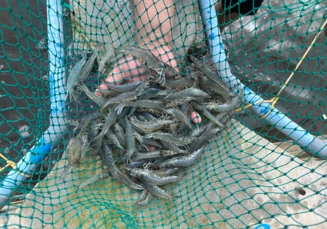 试验田旁养殖的南美白对虾,已于9月上市。卿朋 摄