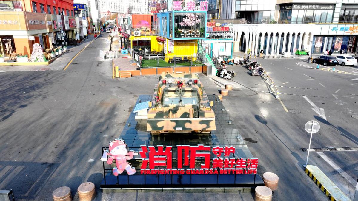 位于街尾的消防坦克展区,威武的退役灭火坦克配以“消防守护美好生活”打卡牌,以其强烈的视觉冲击力,成为消防力量与城市守护的象征,提醒着过往行人时刻关注消防安全。