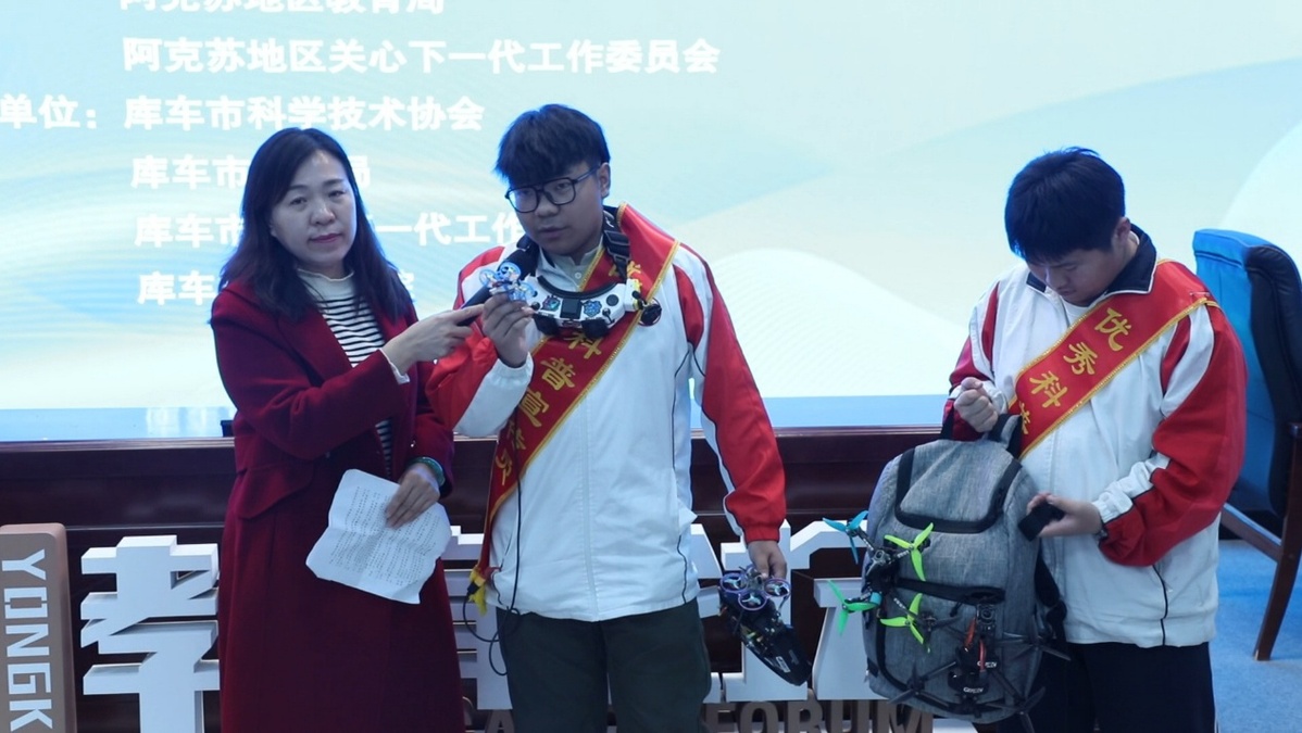11月13日,由新疆阿克苏地区科协、教育局、关工委联合主办,以“科普赋能、筑牢防线”为主题的科技创新优秀作品进校园巡回展科普活动走进库车市慈孝书院。
