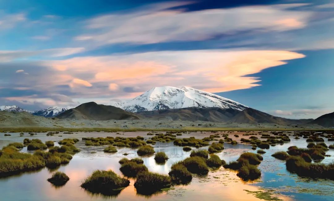 来到塔县,你会发现自己就生活在电影的每一帧里。清晨的薄雾还未散尽,湖面倒映着慕士塔格峰的身影,湖水随光线流转,从浅蓝渐变为深邃的孔雀蓝。在喀拉库勒湖畔,你可以静坐终日,看光影在冰峰与湖面之间作画,感受静谧与宏大。远处,“冰川之父”慕士塔格峰的庞大冰盖在阳光下闪烁着幽蓝色的寒光,条条冰川如同凝固的瀑布,从峰顶倾泻而下,诉说着千万年的地质传奇。