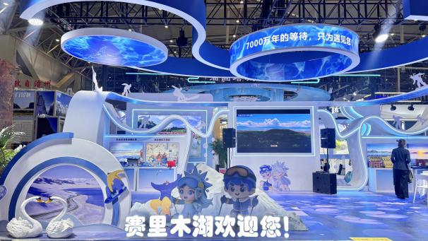 第十九届新疆冬季旅游产业交易博览会博尔塔拉蒙古自治州展区。臧嵘摄