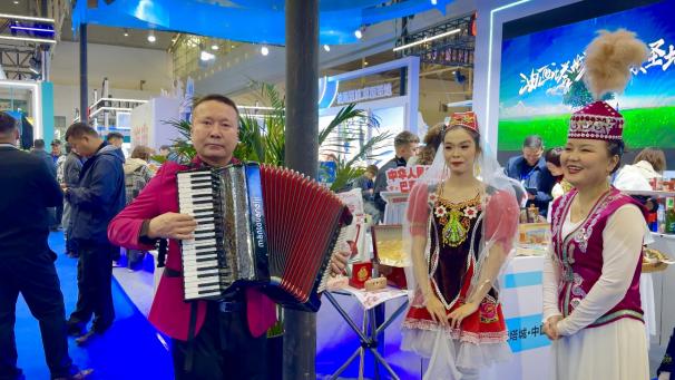最引人驻足的,莫过于各展区轮番上演的民族歌舞,阿勒泰展区的哈萨克族传统舞蹈《黑走马》节奏铿锵,塔城地区展区手风琴演奏的民族歌曲,风情浓郁。“不只是跳舞,我们想通过传统歌舞,让大家更直观地感受阿勒泰的游牧文化。”阿勒泰展区工作人员说。在冬博会,这些表演已不再是单纯的文艺展示,而是成为连接八方来客与新疆本土文化的情感纽带。