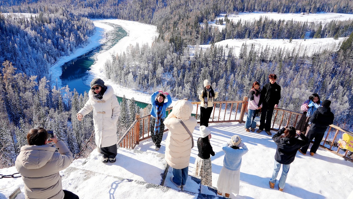 阿勒泰的冬季不仅吸引了大批滑雪爱好者,还有不少游客特地选择冬季来到这里,感受这里的冰雪美景。禾木村中,错落有致的木屋与山侧茂密的森林被大雪染成一幅水墨画,雪友们结束了当天的粉雪滑行后可以漫步在村中,感受这里的宁静祥和。在卧龙湾、月亮湾、神仙湾和喀纳斯湖畔,不少游客选择带上旅拍团队,选取满意的拍照角度,用光影记录下人生中的难忘时刻。