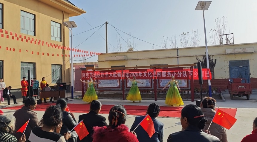 “在家门口就能看到这么精彩的演出,既能欣赏到好看的节目,还能感受到中华文化的韵味,太开心了!”迪利亚尔·托胡提笑着说道。近日,库车市齐满镇琼博孜村文化广场热闹非凡,阿克苏地区塔里木歌剧舞团2025年文化巡回服务小分队带着精心编排的节目走进乡村,为村民们送上了一场浸润心灵的文化盛宴,让中华文化元素在田间地头绽放光彩。